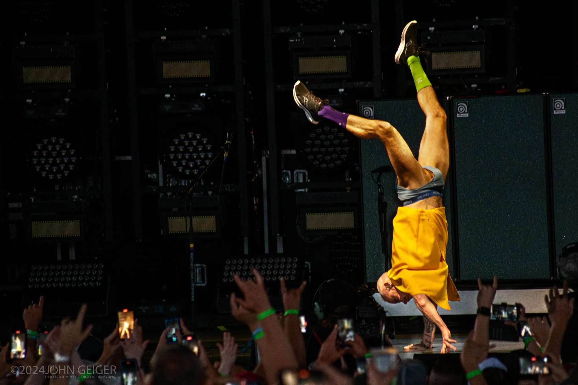 Flea, the band's iconic bassist, is a force of nature. His slap-bass solos were a highlight of the night, particularly during "Suck My Kiss". His boundless energy and playful interactions with the audience underscored his status as one of the greatest bassists in rock history.